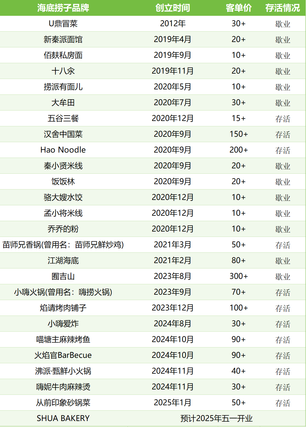 这句话的背后,多方报道显示,海底捞先后孵化的26个子品牌中,半数以上已歇业,三分之一的品牌存活时间不到一年。
