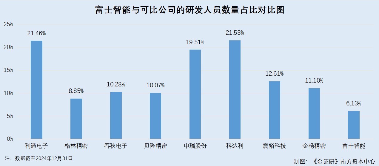 据富士智能2025年报,截至2025年末,富士智能的研发人员数量占比为6.13%。