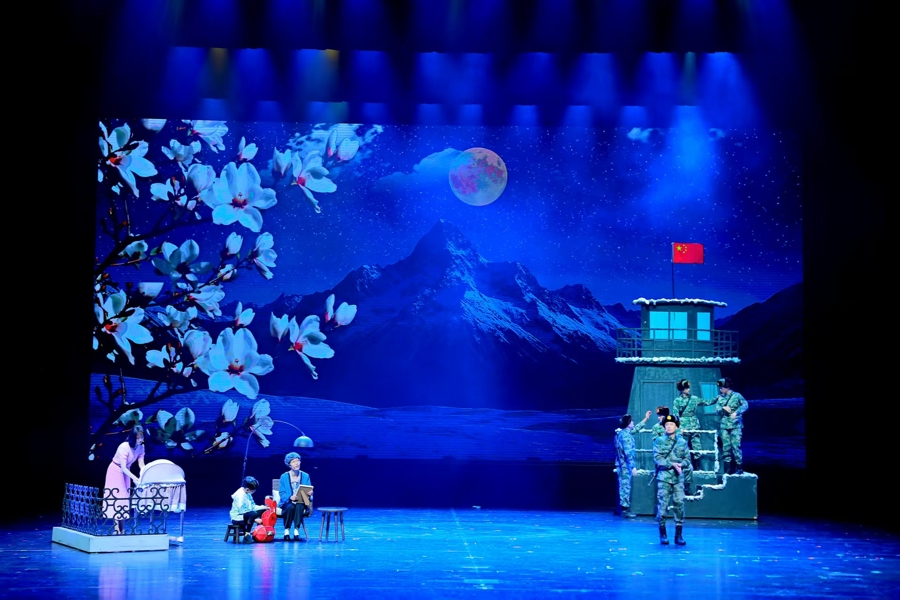 今年,同样由栾岚导演的表演唱《捧一把月光》也入围了群星奖决赛。“覅怕船儿小,覅怕浪头高……”当成都城市音乐厅响起上海民谣时,全场都安静了。舞台上,边疆哨所的士兵和上海的家人遥遥对望,细腻入微的思念、保家卫国的情怀被娓娓唱出。演出过程中还碰到一个小意外,主唱的话筒忽然无法出声,被及时叫停重来一遍。“我们考虑过舞台上的临场意外,做出了不同方案,队员们并未慌乱,也未影响参评。”栾岚说。