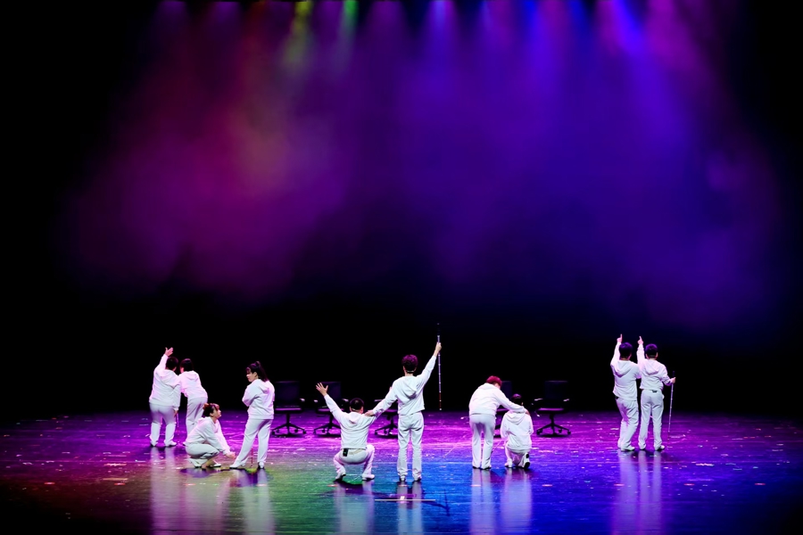 音乐小品《无障“爱”》则是由一群视障人士表演的阿卡贝拉音乐剧,讲述他们渴望被平等对待的心声。群星奖终评前一天,声乐老师正在细抠台词,让作品更具戏剧张力。一位团员忽然头疼,大家围上去帮她按摩,直到头疼缓解才重新排练。“来到决赛舞台上,让所有观众都看到这个群体,就已经成功了。”导演王丽鹤说,“团队很有信心,很放松,我比他们更紧张。”