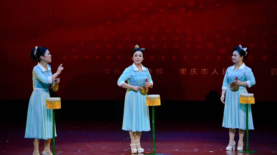 进入群星奖决赛,对于很多群文创作者来说,是第一次,也是最重要的一次。抵达成都、重庆参加终评,每个团队都铆足了劲,找酒店借排练室,见缝插针抠台词、复盘每个细节、确定服装,一直打磨到演出前的最后一刻。